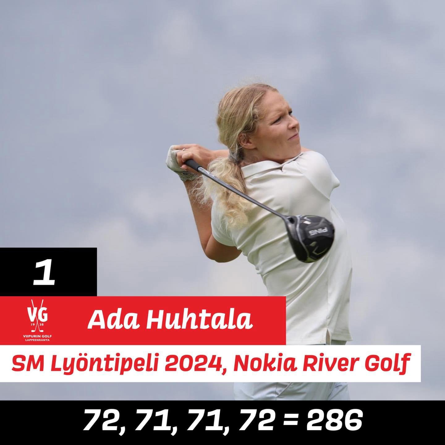 Viipurin Golf Ry:n Ada Huhtala pelasi Nokia River Golfin Rock -kentällä SM lyöntipelin Suomen Mestariksi tuloksella (72, 71, 71, 72) -2!