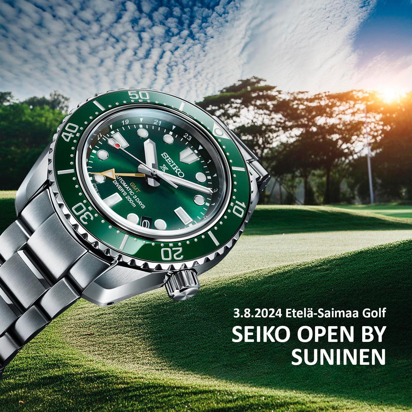 3.8. Etelä-Saimaa Golf -kentällämme pelataan jälleen supersuosittu Seiko Open by Suninen. Pelimuotona on tasoituksellinen lyöntipeli, ja kilpailun kolme parasta palkitaan. Tuttuun tapaan palkintopöytä on katettu Seikon ja Sunisen toimesta huippuunsa! Lisäksi väylällä 3 hole in one palkintona Seiko Prospex GMT -rannekello (arvo 1800€)!